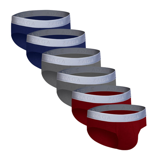 Brief Algodón 100% 6Pack Azul, Gris, Vino
