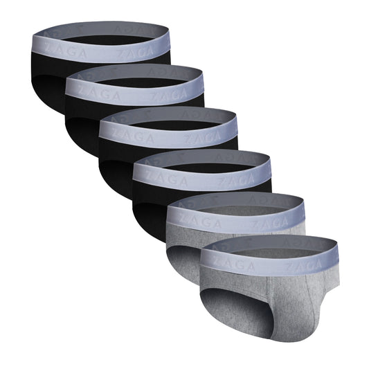 Brief Algodón 100% 6Pack Negro, Gris, Negro